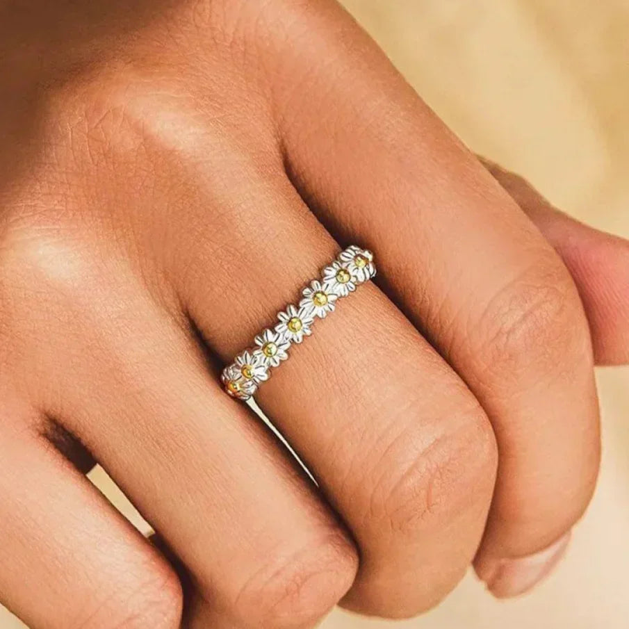 Magdalena – Hand-Painted Enamel Daisy Ring